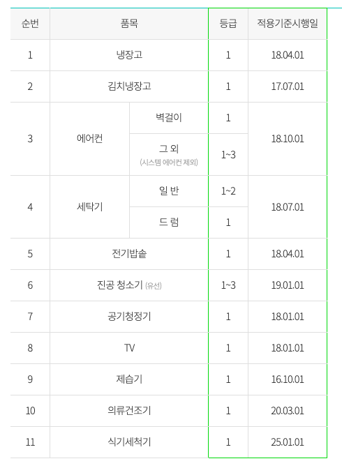 - 구매는 온·오프라인 어디서나 가능. 단, 반드시 에너지소비효율등급 라벨이 있어야 함.