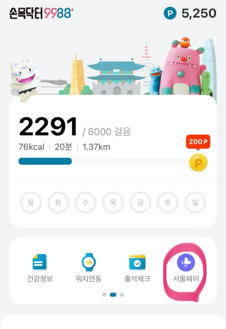 손목닥터 9988 포인트는 걷기 운동 후 손목닥터 앱을 통해 적립되는 포인트입니다. 걷기 목표를 달성하면 최소 200포인트에서 이벤트 달성시 최대 700~1000포인트를 하루에 모으실 수 있습니다. 이 포인트는 다양한 방식으로 활용할 수 있는데, 사용하기 위해서는 서울페이로 전환 신청을 해야 합니다.