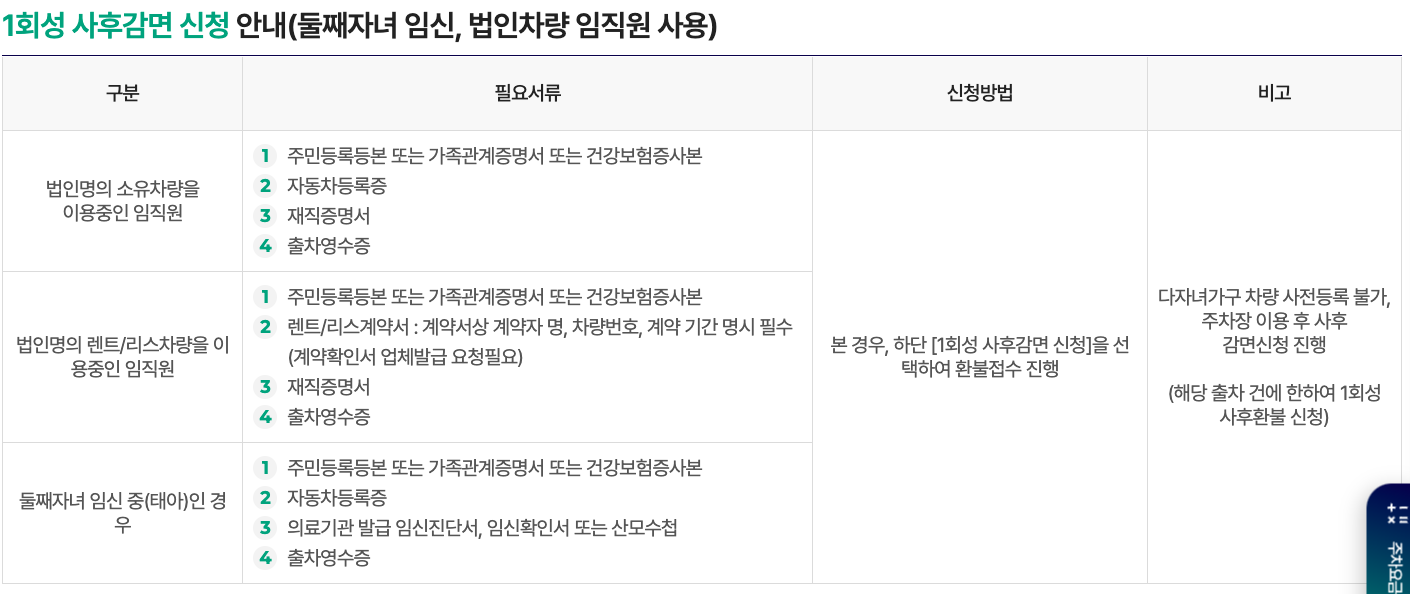 • ▶ 사후 감면신청은 출차 일로부터 30일 이내까지 신청 가능 (출차 후 30일 이후 신청 시 사후 감면 불가)