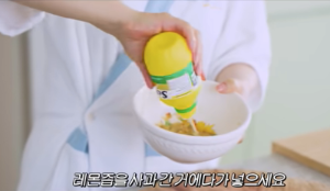 - 갈아놓은 사과에 레몬즙 한 스푼정도 넣어 섞어 줍니다.