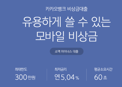 > 카카오뱅크 비상금대출 상품은 마이너스통장 대출입니다. 돈이 입금되는 형식이 아니라 언제든 사용하실 수 있도록 한도가 승인되는 것입니다.